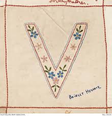 To those who would learn a woman's point of view of internment I would recommend a close inspection of the embroidered patches of the hospital quilts made for the Red Cross.That sprig of heather, those snow capped peaks, a miniature flower garden in full bloom and the brave gesture or motto traced in coloured thread, these reveal more clearly than any essay the secrets of the heart.